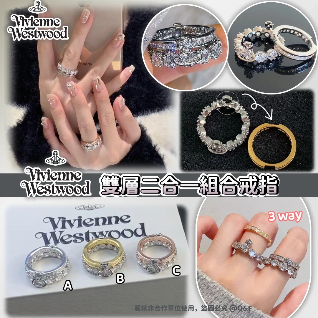 0123 Vivienne Westwood 雙層二合一組合戒指 連禮盒 3月頭