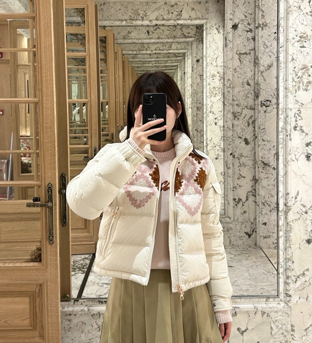 Mon**cler 菱形刺繡圖案短款立領羽絨服外套⭕頂級原單⭕ 🗓截單日期:10月27日 🕙到貨日期:預計12月下旬 💲1998 靈感源自經典針織,飾以刺繡菱形圖案。短款羽絨服將柔軟的羊毛混紡面料與錦綸面料巧妙融合,形成鮮明對比。這款保暖外套採用柔和的色調,可為任何造型增添一抹柔美氣息。 ✂️ 短款設計,輕鬆優化身材比例 👗 ❄️ 羽絨填充,提供卓越的保暖性 🌟 🔄 下擺抽繩,隨時調節 ✔️ 🎨 胸前的粉棕菱格毛線刺繡,成為視覺亮點 ✨ 📐size (cm) : 肩寬 胸圍 衣長 S 42 98 50 M 43 102 51 L 44 106 52 🌸材質: 錦綸 填充:鵝絨 附💯實物影相,放心訂購👍 == ️ 聲明 ️== 🔘 貨品為原單貨/平行進口/廠貨,非專門店購入,不經專櫃,介意者請勿選購 🔘 圖片和實物可能會有小許色差 🔘 由於人手測量,有機會有1-3cm左右誤差純屬正常範圍 🔘 原單貨/貨尾/outlet/跟單貨可能有少許瑕疵或線頭,質量不建議與專門店質量比較,可能存有不影響使用的小瑕疵,請完美主義者慎重考慮。 🔘 所提供的圖片文字只僅供參考,有機會因批次不同包裝有所更改,實品還是依照出貨實物 🔘 所有帖文內容只作分享及參考用途。為免混淆視聽,所有商標或版權均屬有關商品品牌商標的持有人。