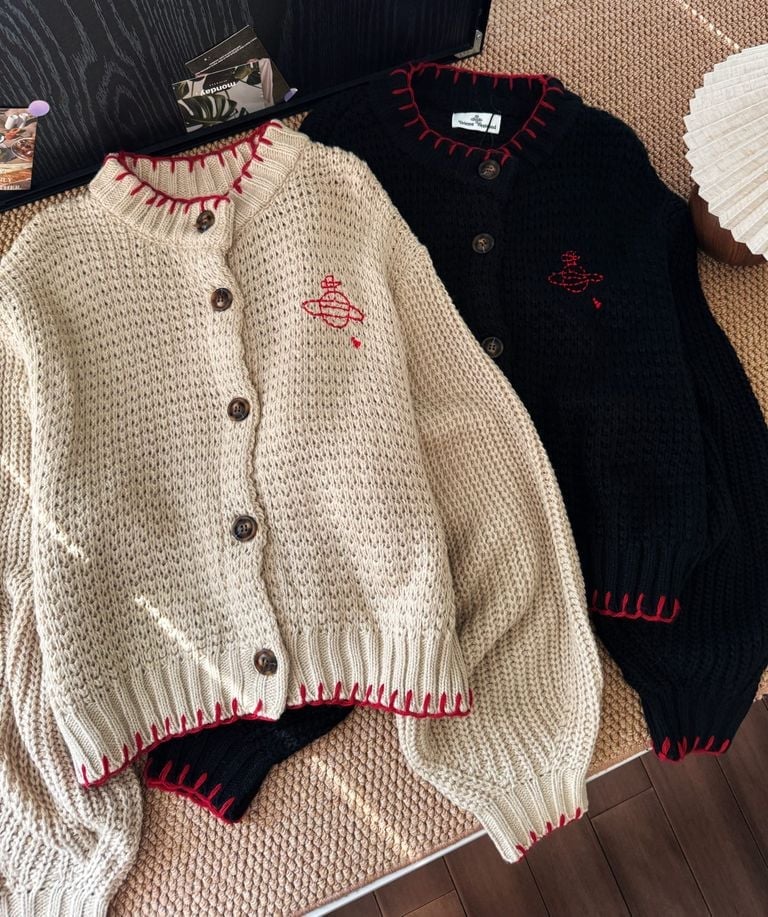 1031 Vivienne Westwood土星鈎針刺繡羊毛開襟冷衫 送圍巾 12月中