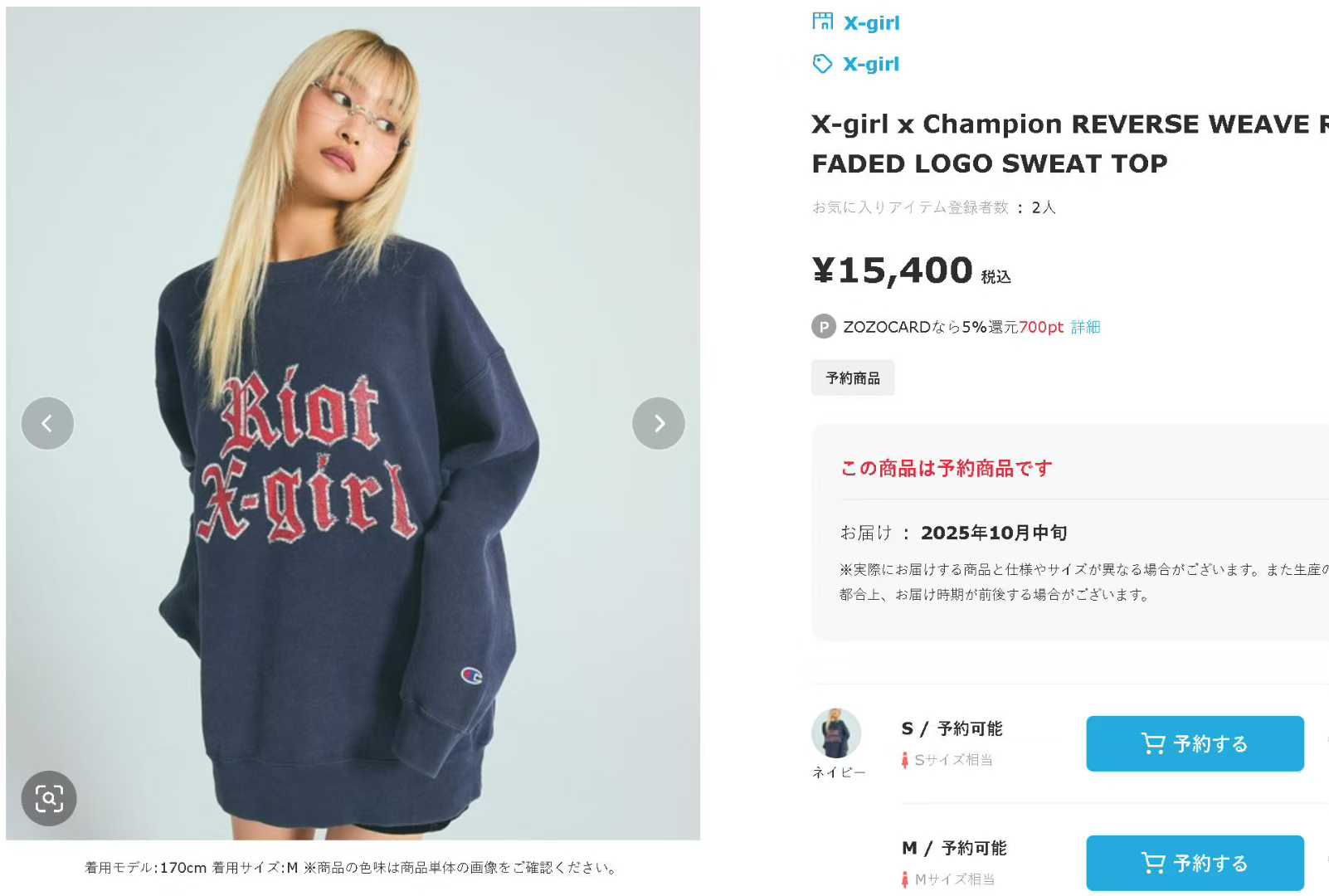 預訂 X-girl × Champion REVERSE WEAVE® 藏青色衛衣