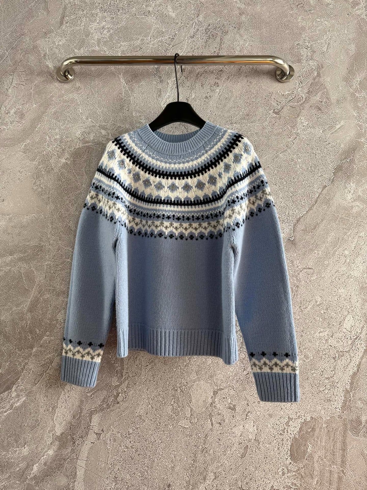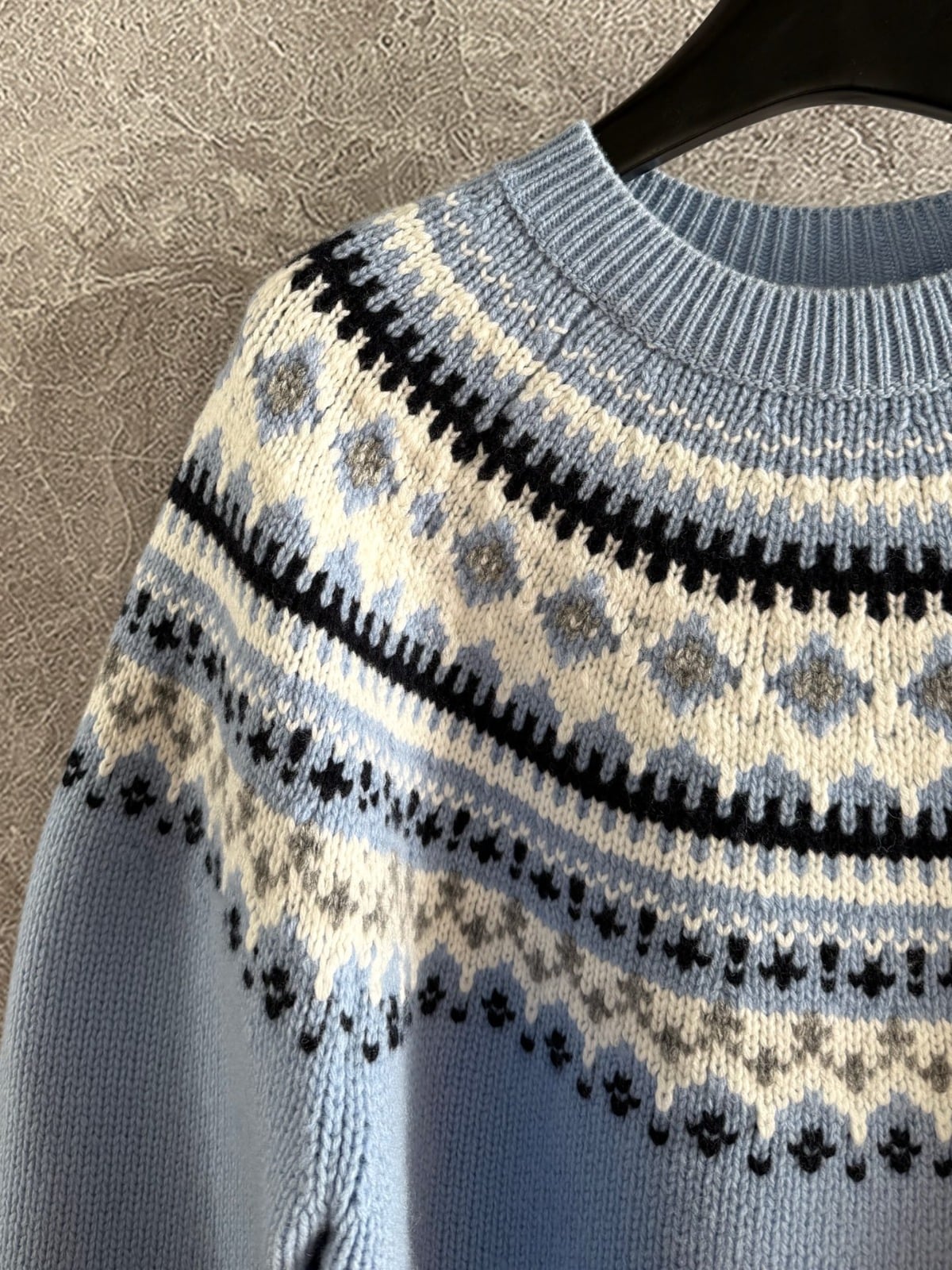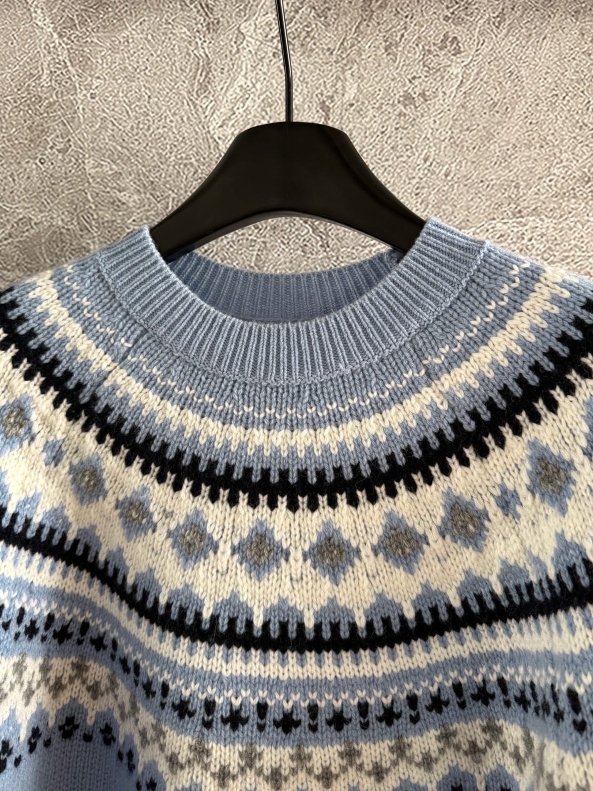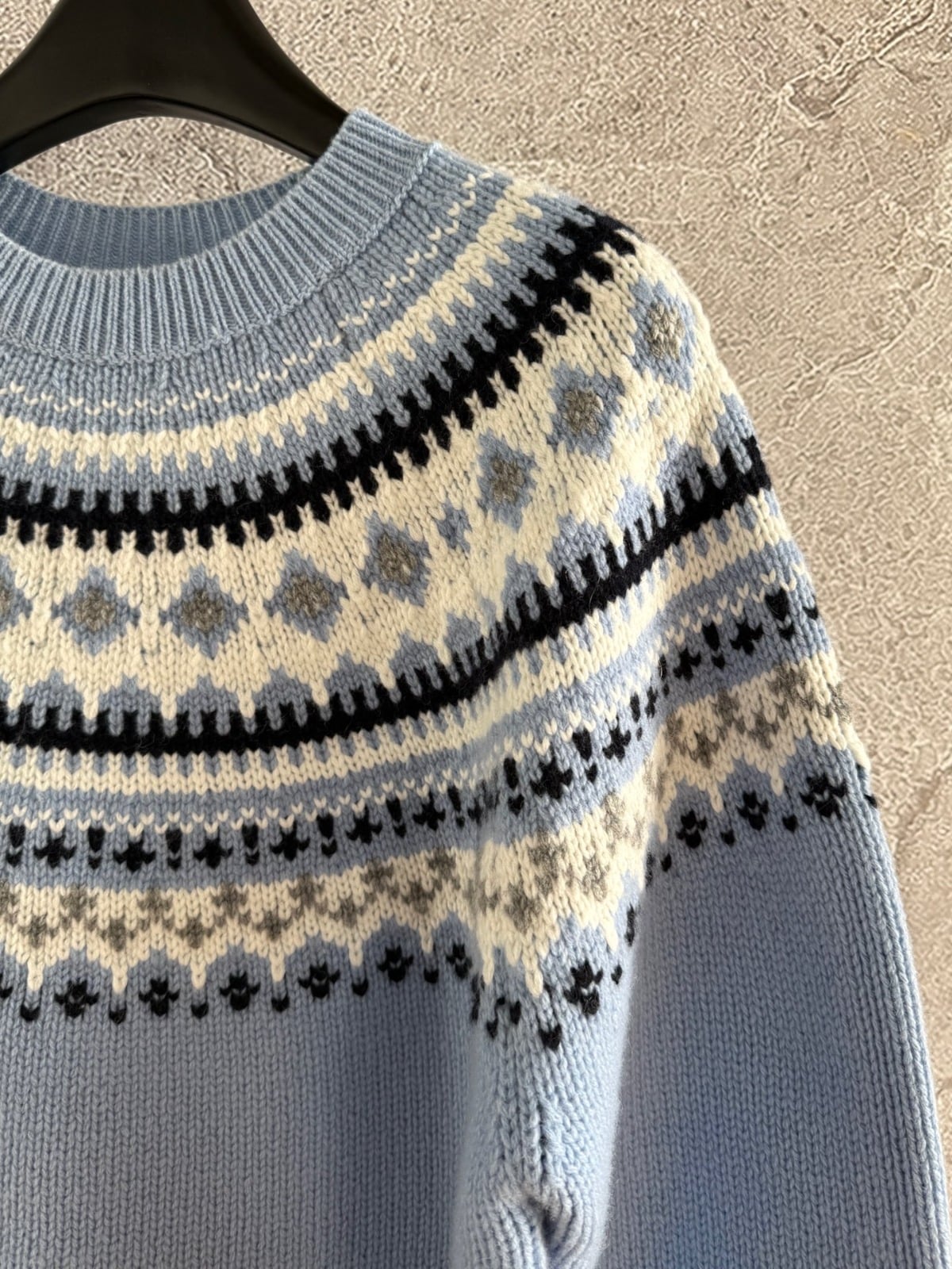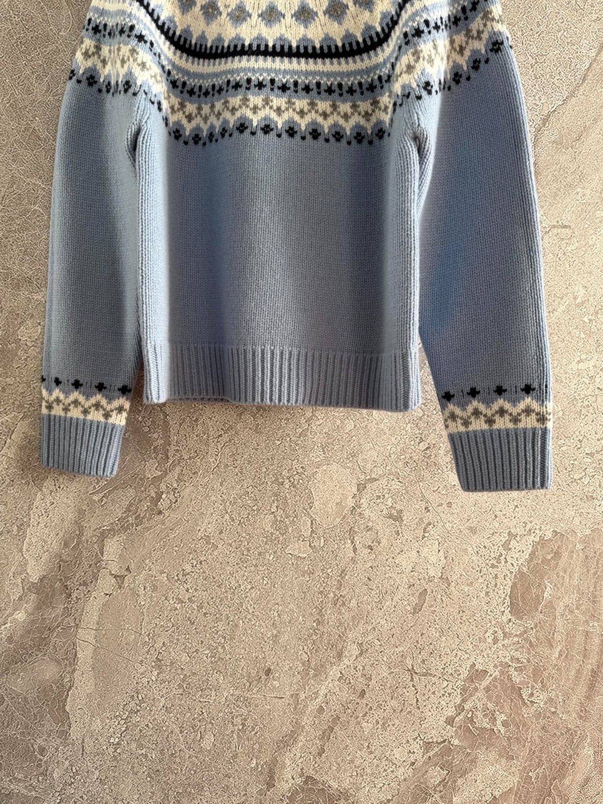 經典的「費爾島提花」—在淺藍色底上點綴雪花紋理❄️,就像冬夜裡靜靜飄落的初雪,柔和又浪漫🎈
