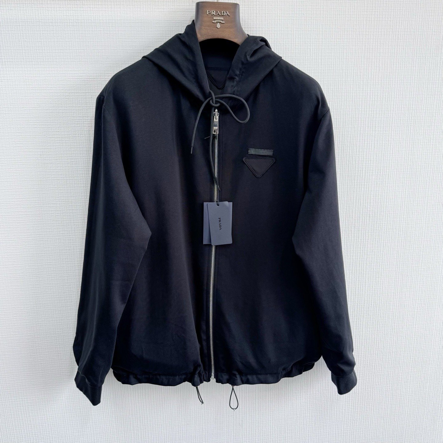 1007 PRA**DA Reversible Jersey Hoodie 三角貼布標誌雙面外套⭕頂級原單⭕12月頭