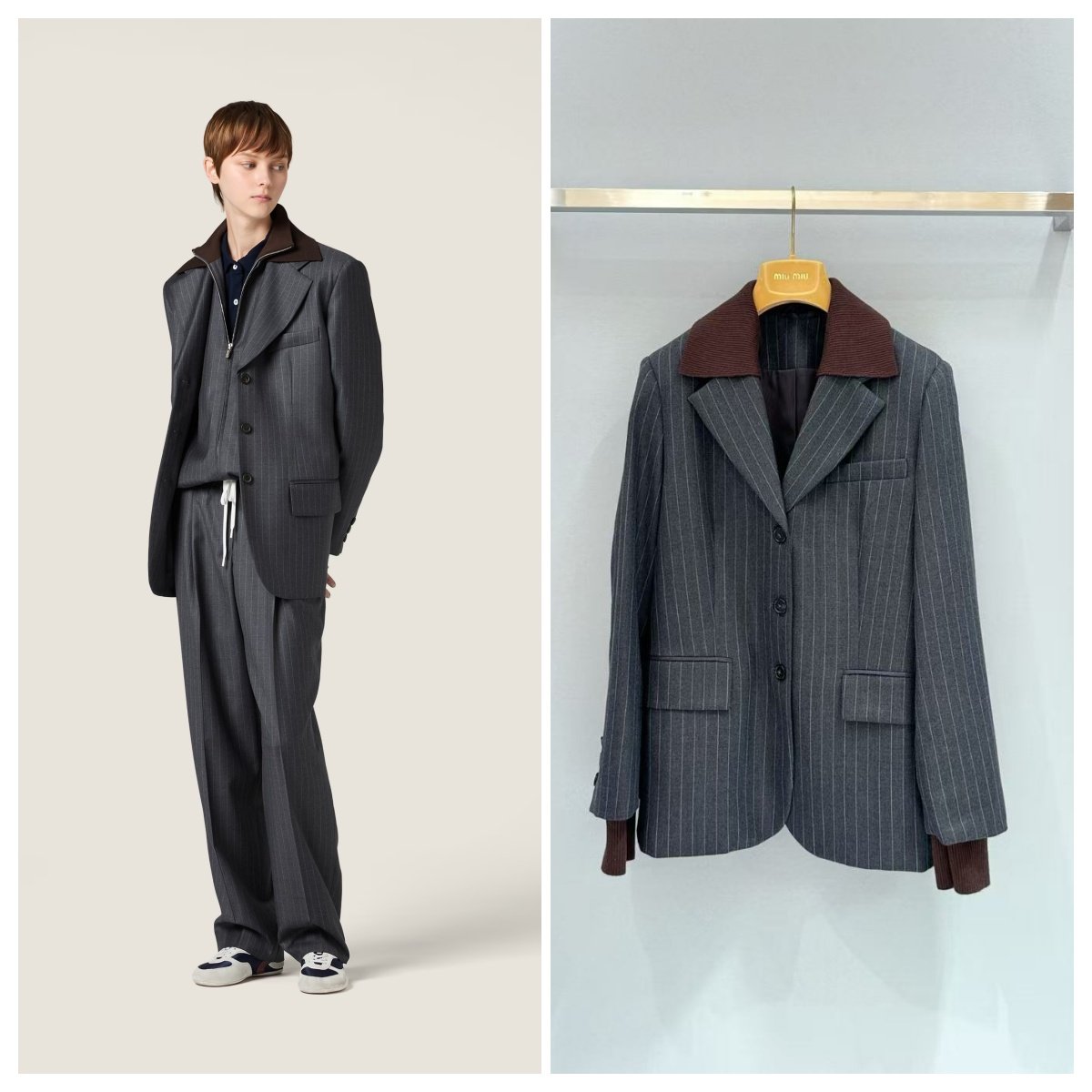 1017 Mi**u Mi**u Single-breasted pinstripe jacket 單排扣細條紋西裝外套⭕頂級原單⭕12月中
