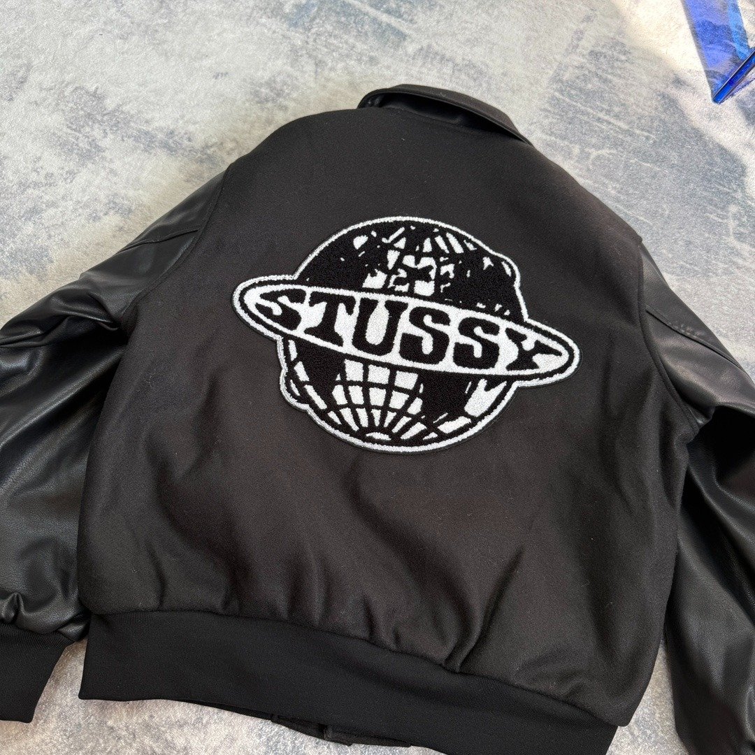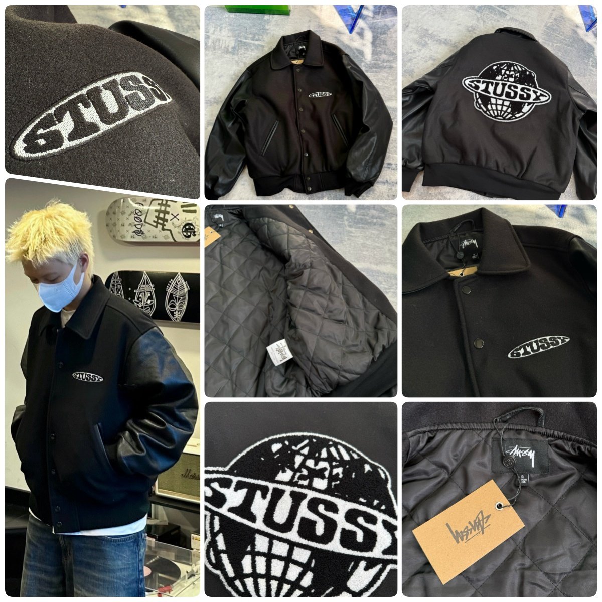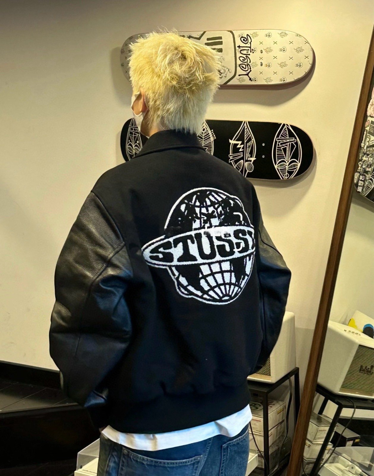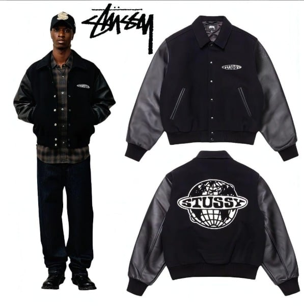1023 Stussy FW25 GLOBE VARSITY 拼皮袖棒球服外套 12月頭