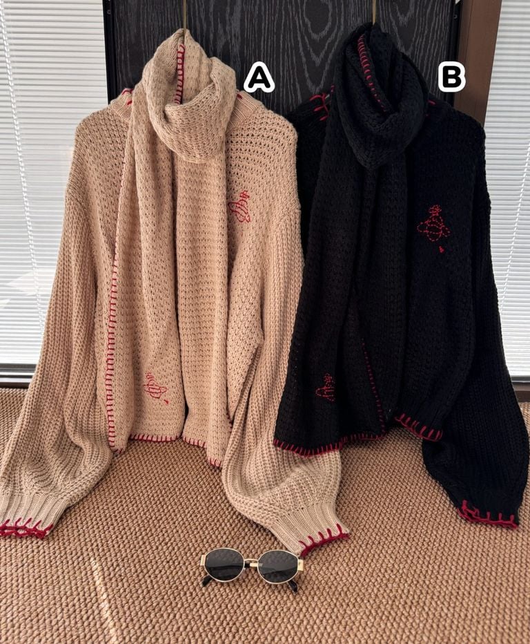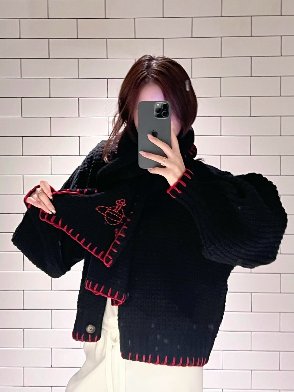 1031 Vivienne Westwood土星鈎針刺繡羊毛開襟冷衫 送圍巾 12月中