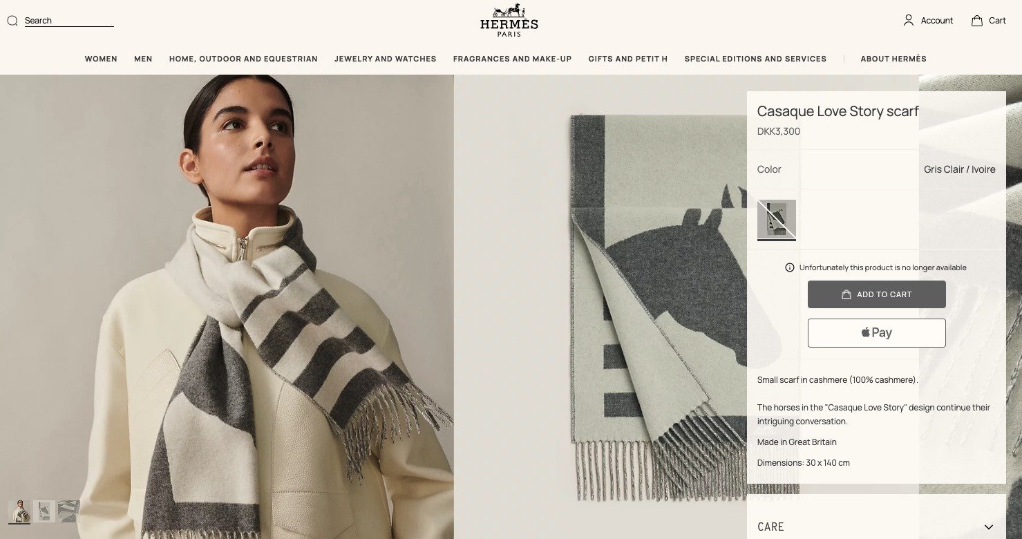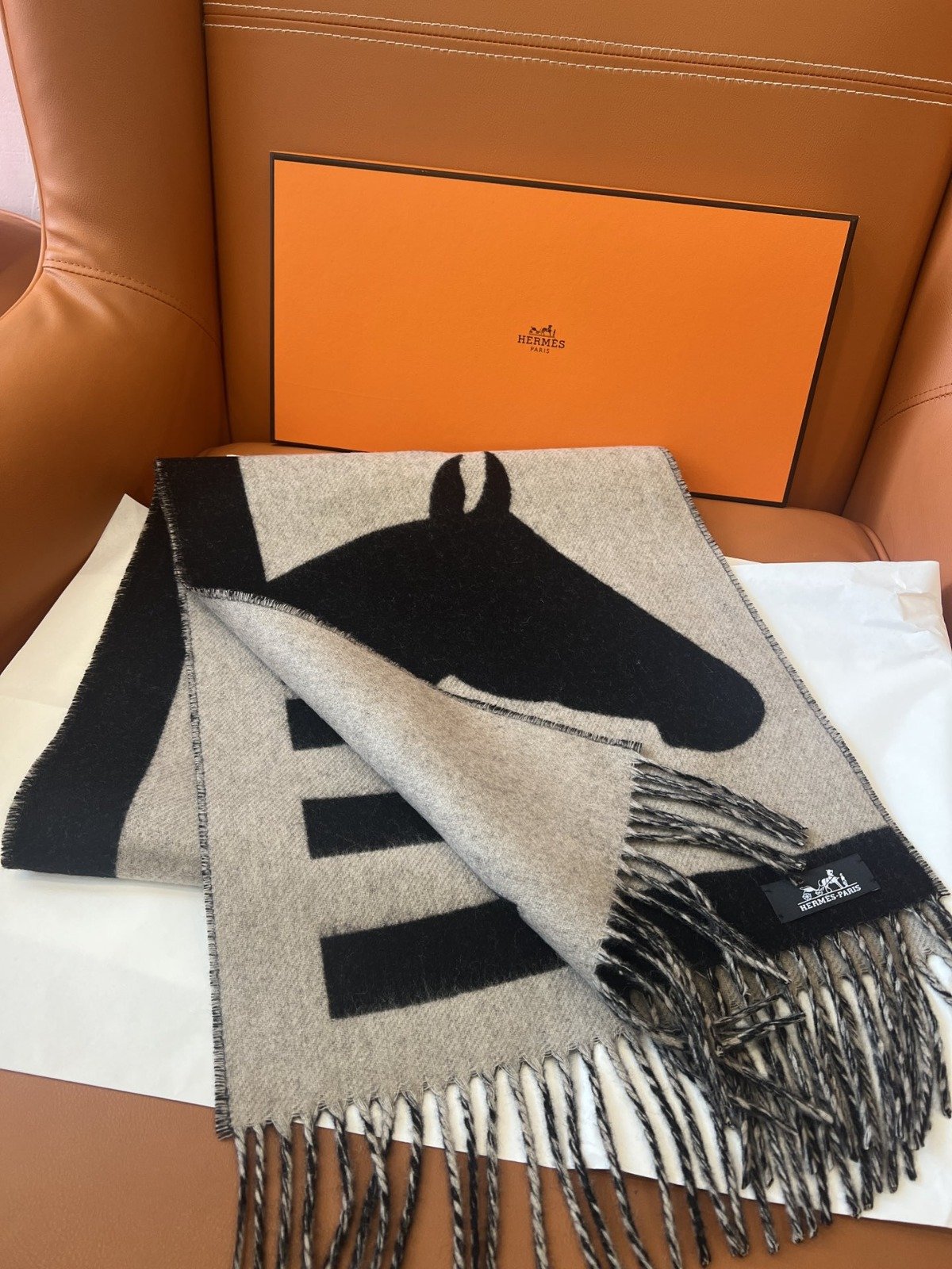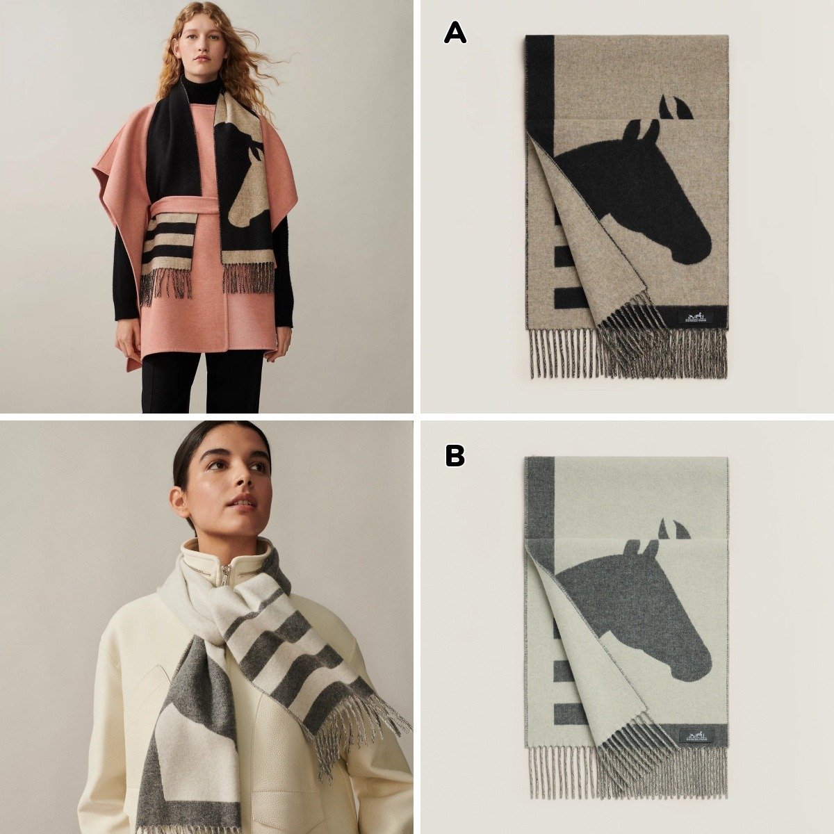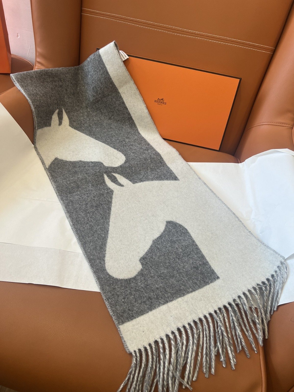 HER**MES Casaque Love Story scarf 雙馬對話羊絨頸巾⭕頂級原單⭕ 🗓截單日期:11月10日 🕙貨期:預計12月中 💲499🍀簡易包裝 🔥原廠獨家貨,限量‼️🌹 Casaque Love Story 圍巾以馬術為主題,圖案中的馬匹呈現出有趣的對話場景,體現了愛馬仕一貫的優雅與藝術風格。雙面羊絨觸感柔軟,長度適中,大氣簡約,可日常搭配或者作為披肩點綴,男女同款~兼具藝術性與實用性的高端配飾,適合收藏或送禮。 🌈顏色:A 黑色|B 灰色 📐尺寸: 30 x 140 cm ❣️材質:100%羊絨 附💯實物影相,放心訂購👍 == 聲明 == 🔘 貨品為原單貨/平行進口/廠貨,非專門店購入,不經專櫃,介意者請勿選購 🔘 圖片和實物可能會有小許色差 🔘 由於人手測量,有機會有1-3cm左右誤差純屬正常範圍 🔘 原單貨/貨尾/outlet/跟單貨可能有少許瑕疵或線頭,質量不建議與專門店質量比較,可能存有不影響使用的小瑕疵,請完美主義者慎重考慮。 🔘 所提供的圖片文字只僅供參考,有機會因批次不同包裝有所更改,實品還是依照出貨實物 🔘 所有帖文內容只作分享及參考用途。為免混淆視聽,所有商標或版權均屬有關商品品牌商標的持有人。