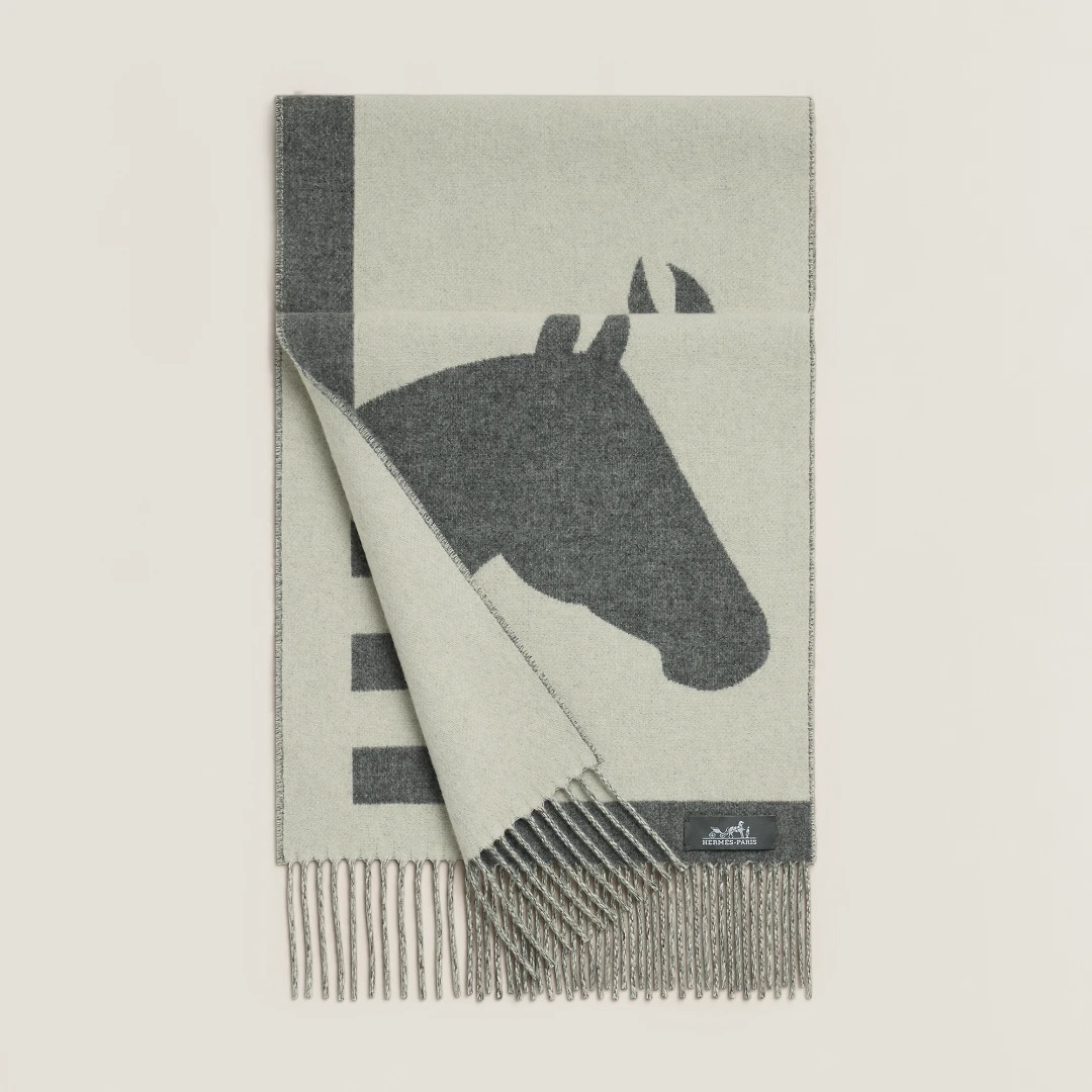 1110 HER**MES Casaque Love Story scarf 雙馬對話羊絨頸巾⭕頂級原單⭕12月中