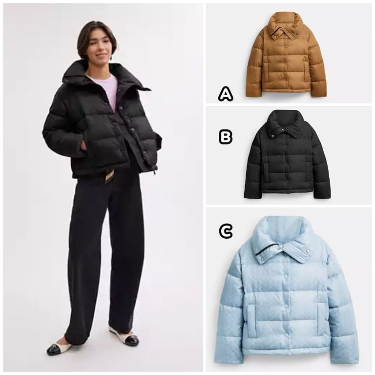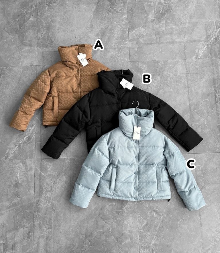 COACH 短款立領提花拉鍊羽絨服外套 截單日期:11月14日 到貨日期:預計12月底 💲998 🎩 立領設計,提供額外的溫暖,整體厚實感強 ❄️ 🧵 高密彈力膽布,8號金針絎絨,確保不跑絨 💪 🦆 大朵白鴨絨,蓬鬆度極佳 ☁️ 🎨 設計簡約大方,百搭易襯 😊 🌈 顏色: A 棕色 B 黑色 C 藍色 📐size (cm) : S 衣長57 胸圍110 肩寬52 袖長58 M 衣長59 胸圍114 肩寬53 袖長59 L 衣長61 胸圍118 肩寬54 袖長60 🌸材質:白鴨絨 聲明: * 貨品為平行進口貨/outlet貨,非專賣店購入,請介意者慎重考慮。 * 人手量度有機會1-3cm左右誤差屬正常 * 顏色可能會因網頁呈現與拍攝關係產生色差,圖片僅供參考,實物為準。