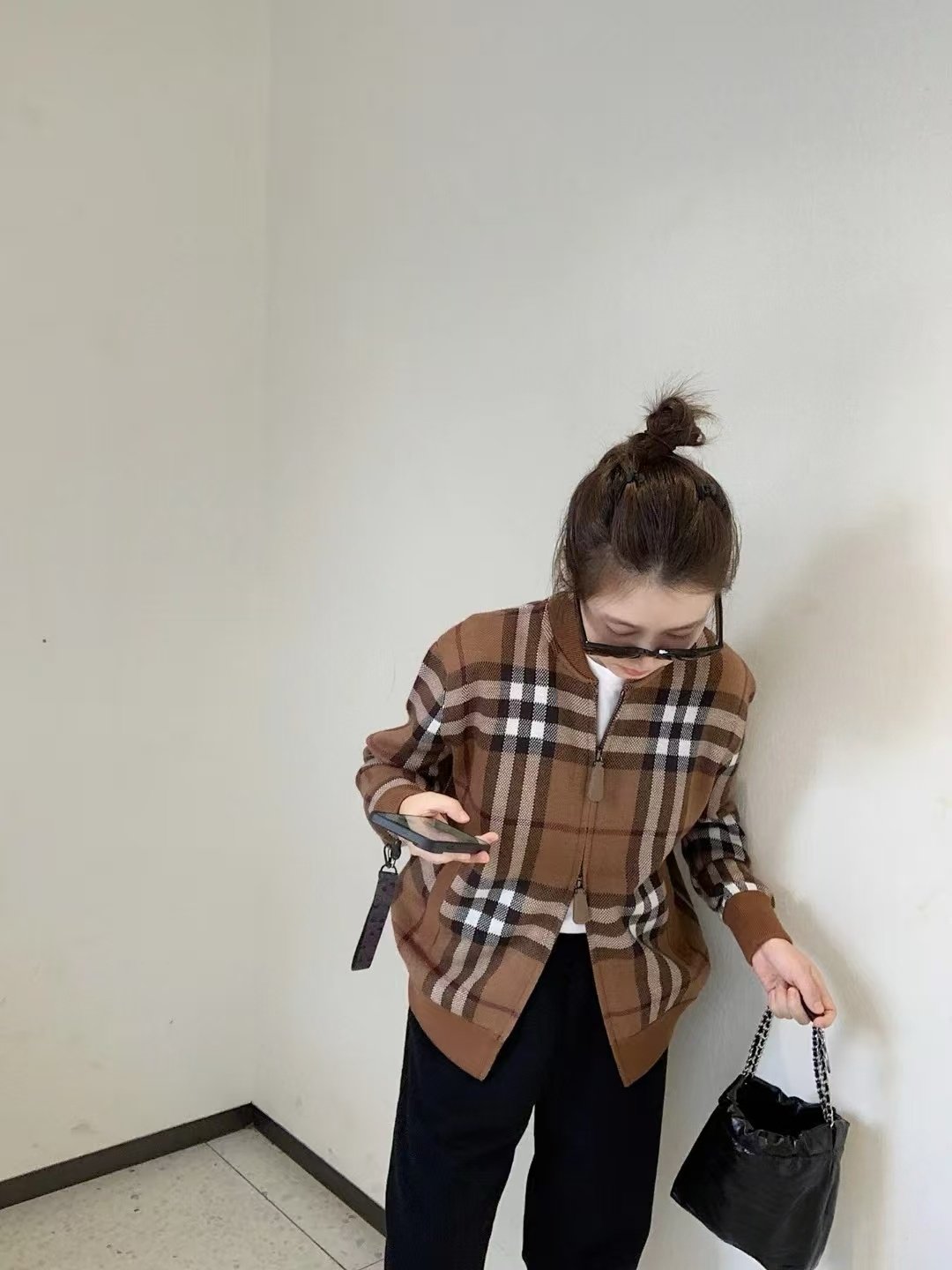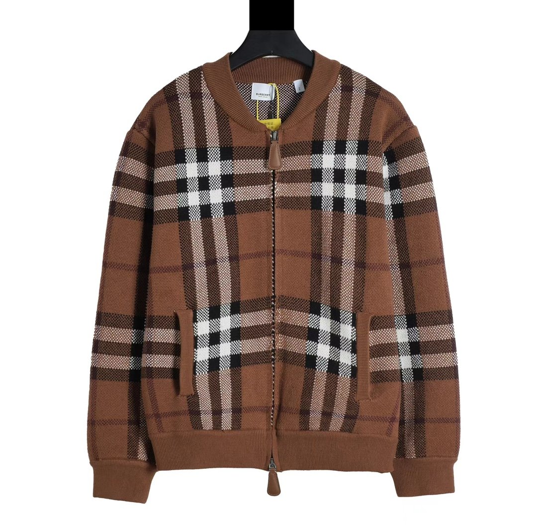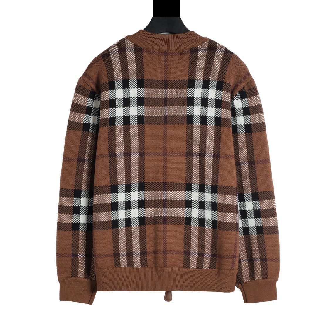 1117 Bur**berry 棕色格紋圓領拉鍊外套⭕頂級原單⭕1月頭