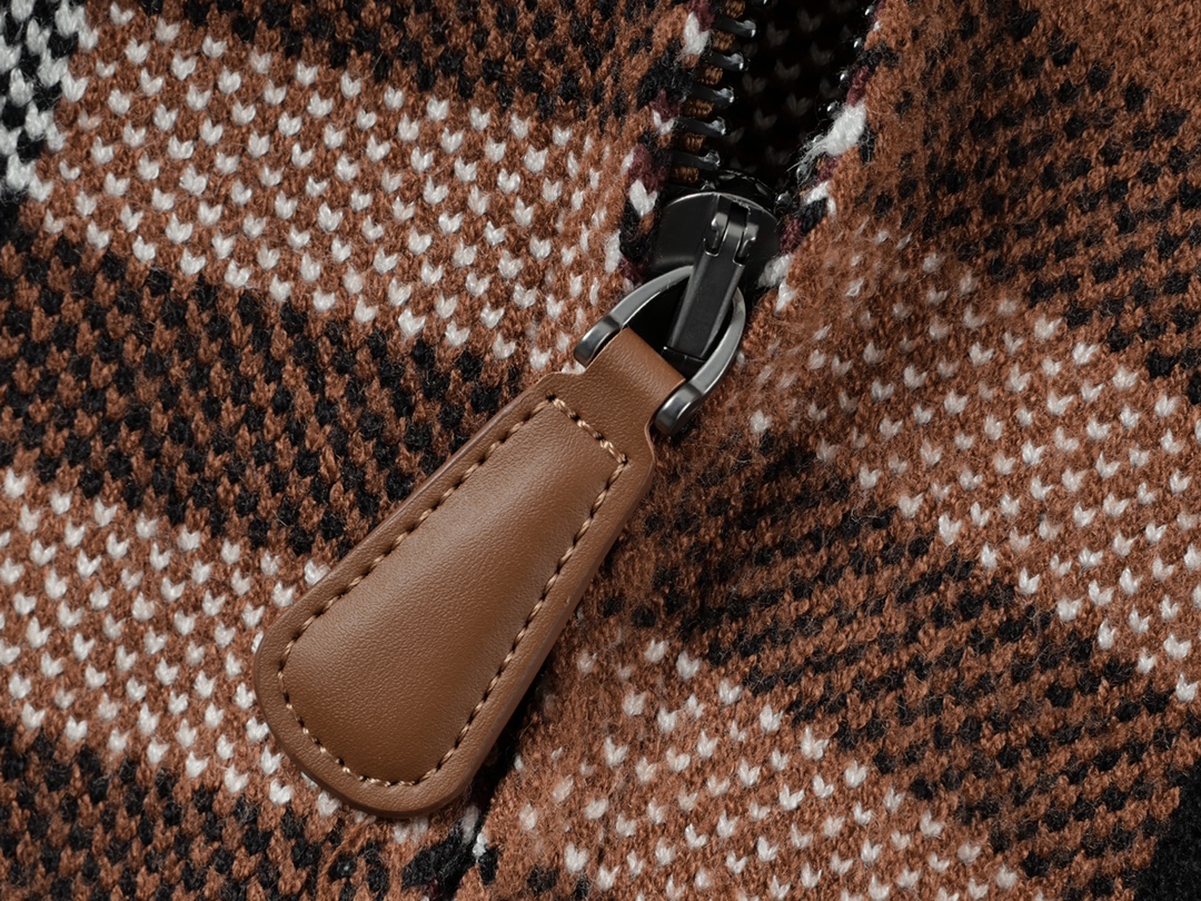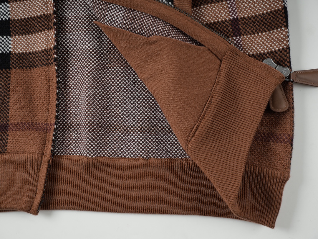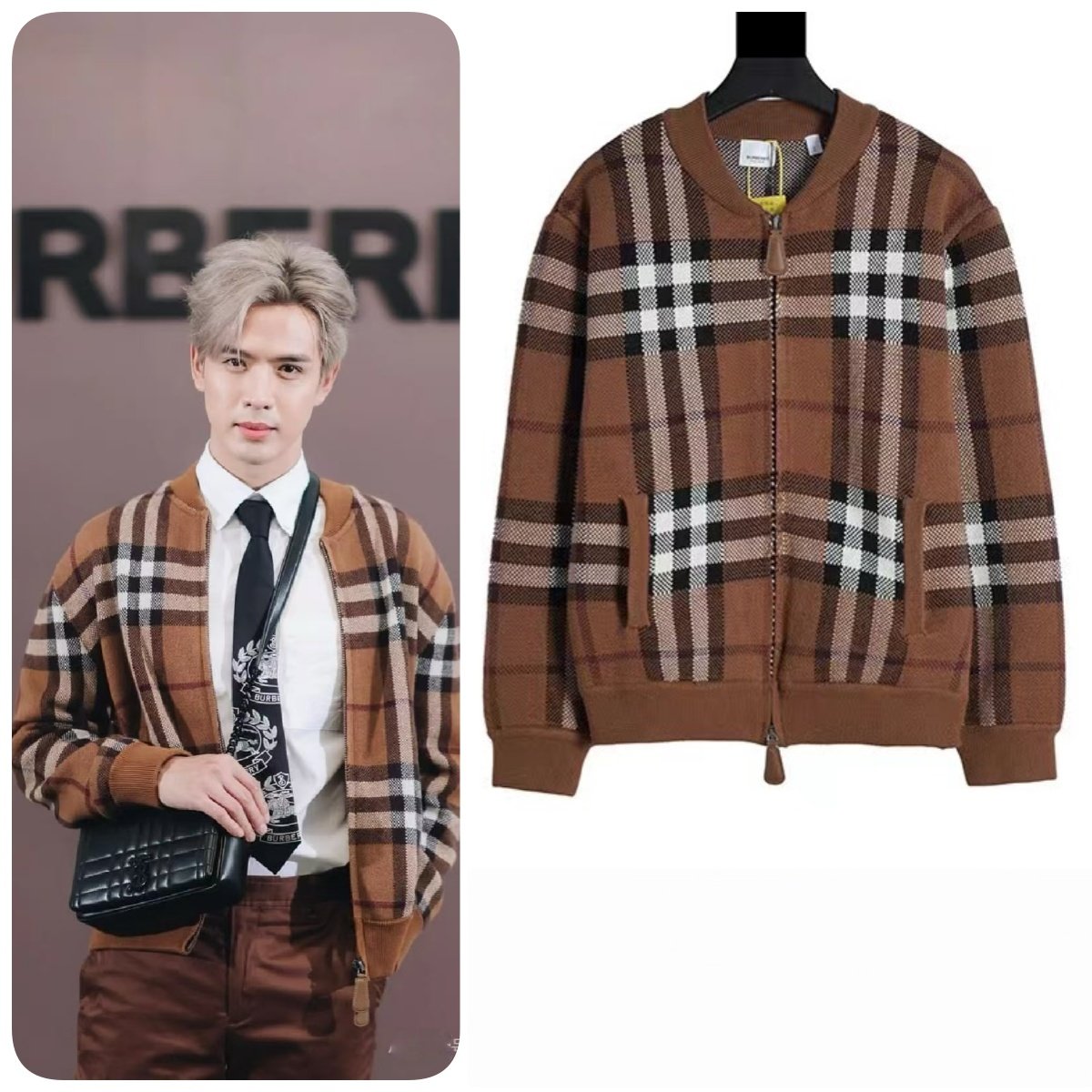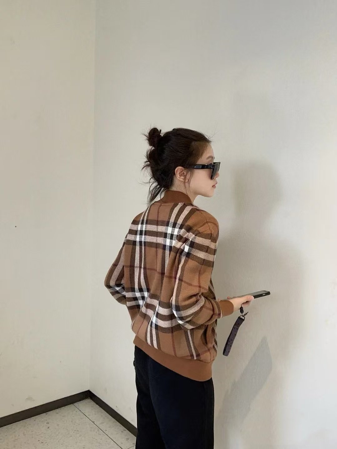 1117 Bur**berry 棕色格紋圓領拉鍊外套⭕頂級原單⭕1月頭