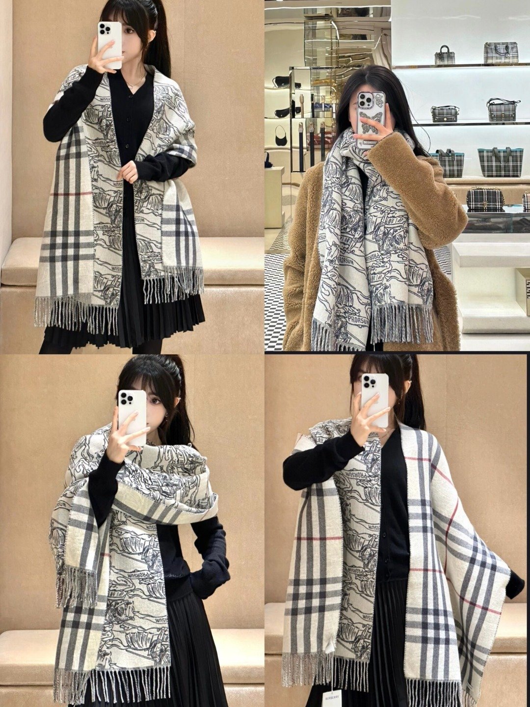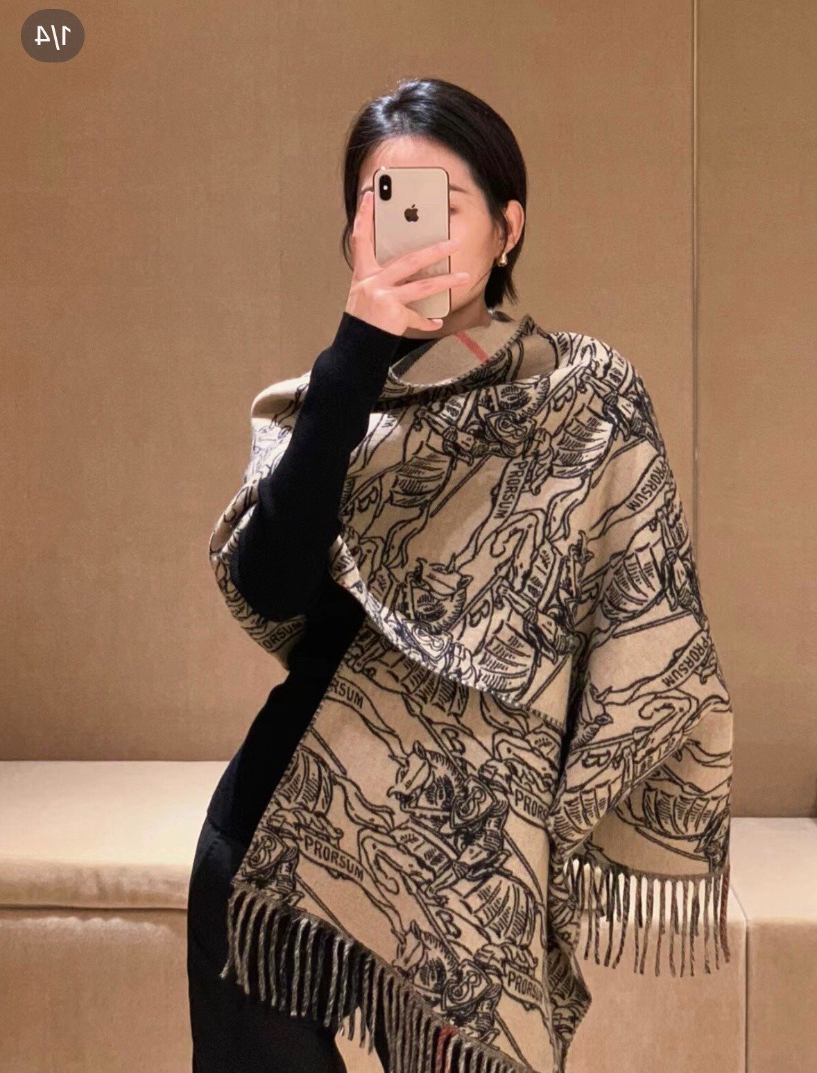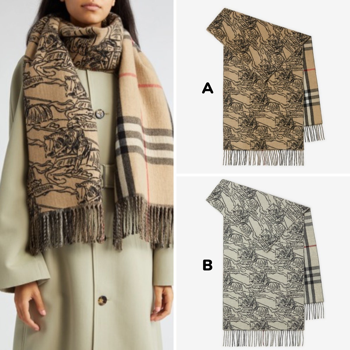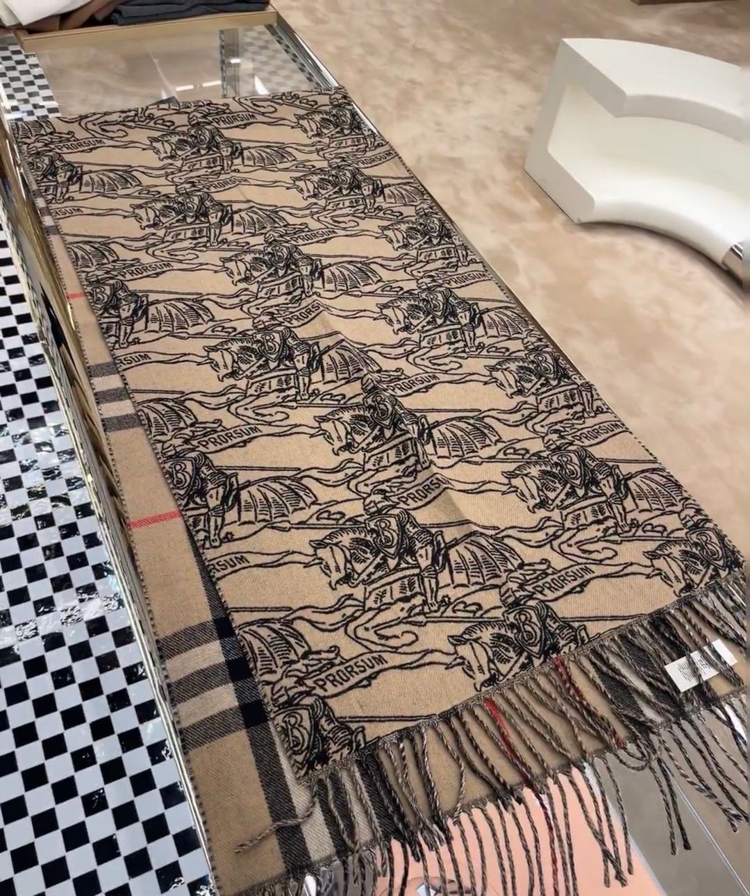 1119 BUR**BERRY EKD Cashmere Reversible Scarf 戰馬標誌羊絨頸巾⭕原單⭕1月頭
