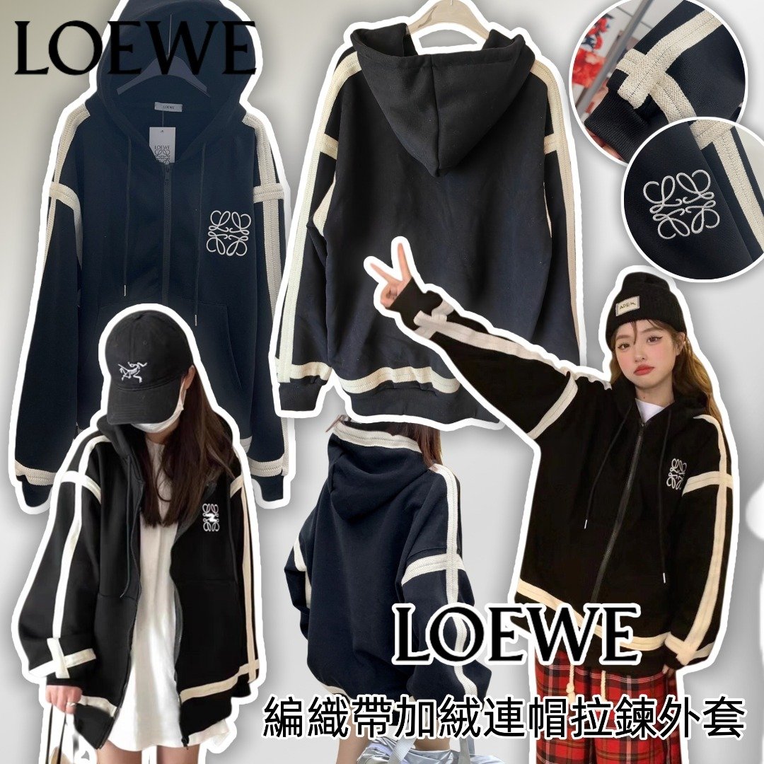 1124 Loe**we 編織帶加絨連帽拉鍊外套⭕原單⭕1月頭