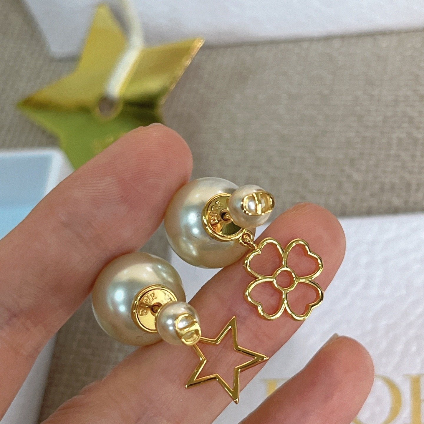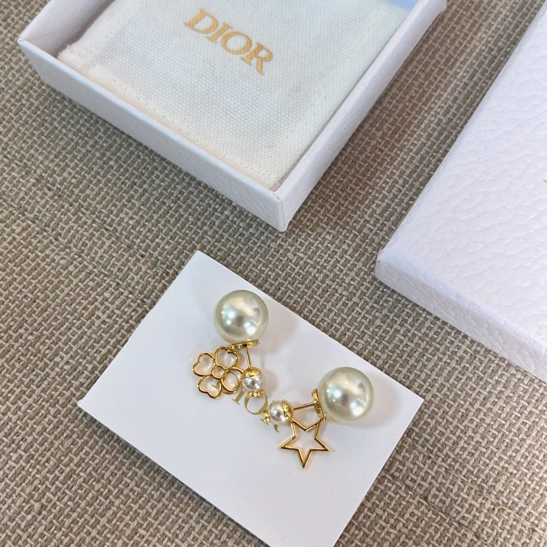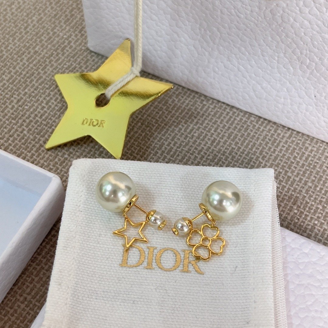 1125 Di**or 鏤空星草雙珠耳環 連禮盒⭕原單⭕1月中