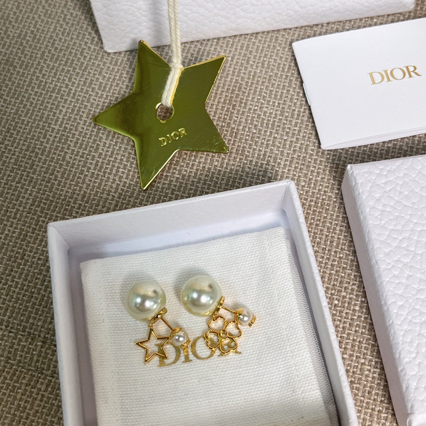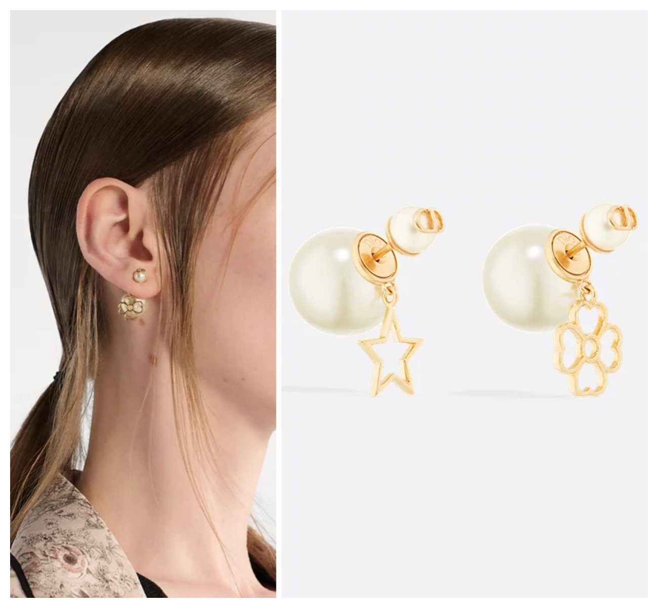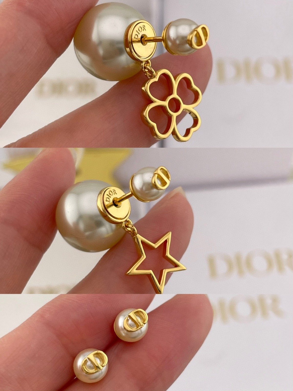 1125 Di**or 鏤空星草雙珠耳環 連禮盒⭕原單⭕1月中