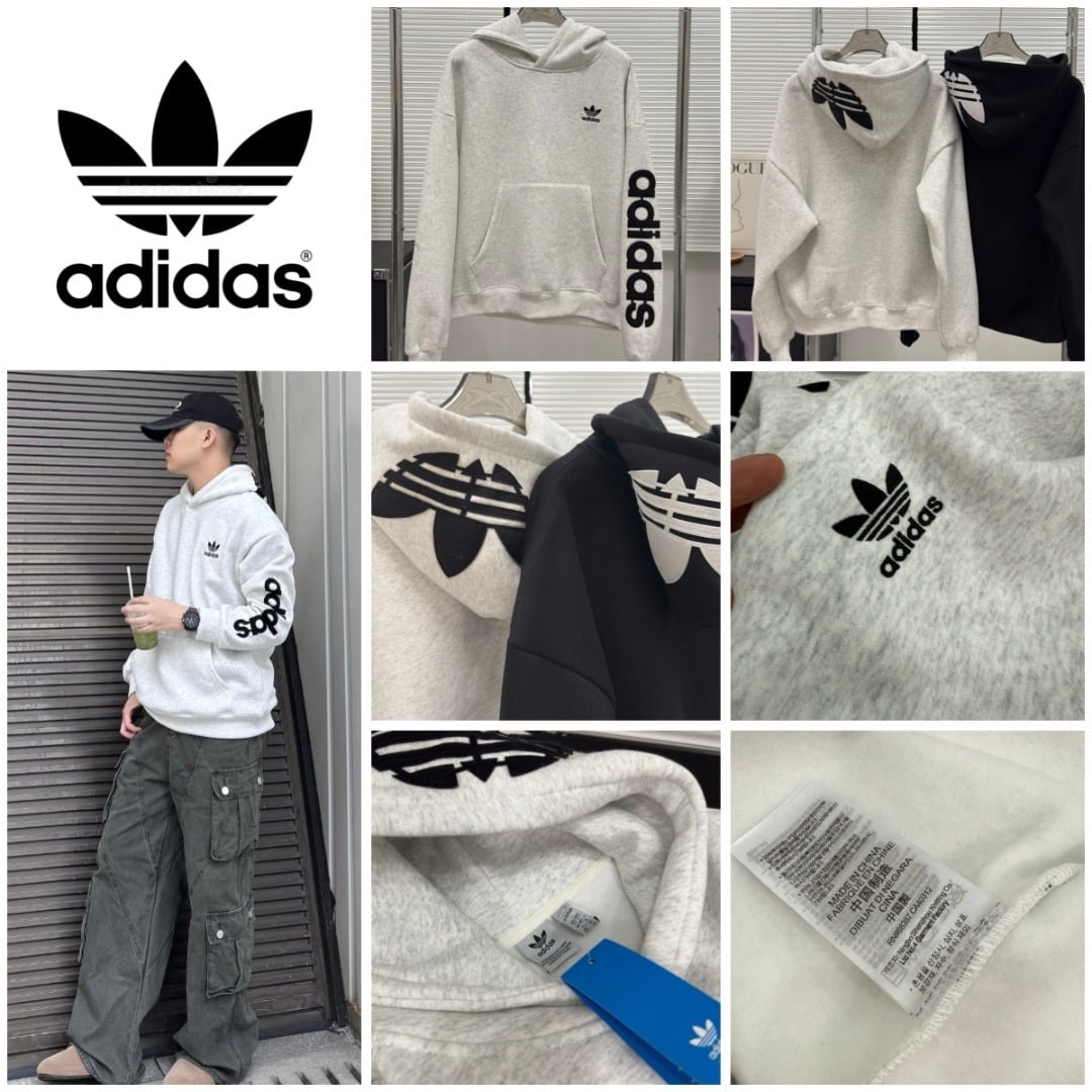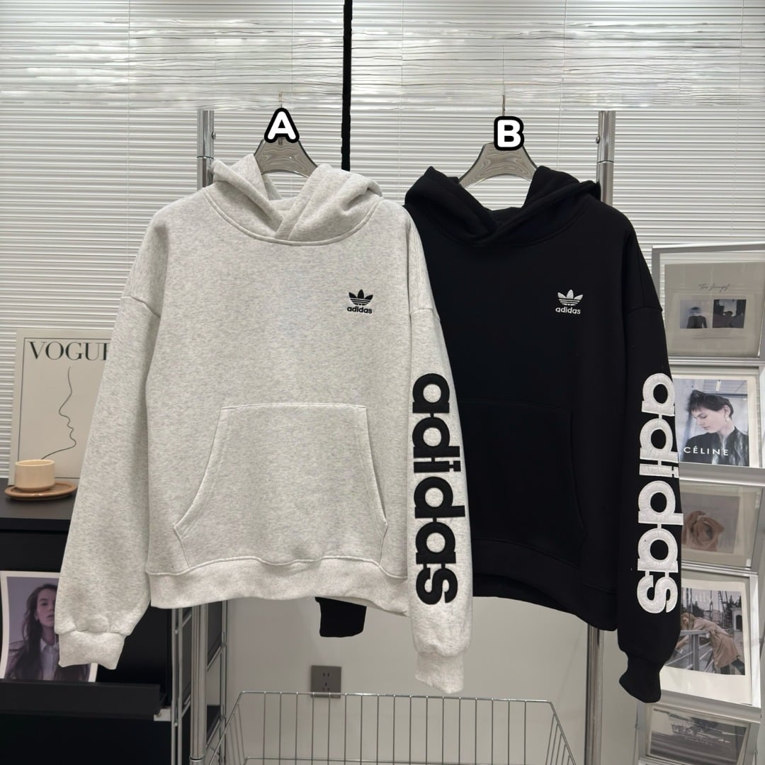 1224 Adidas 字母刺繡加絨連帽衛衣 2月頭