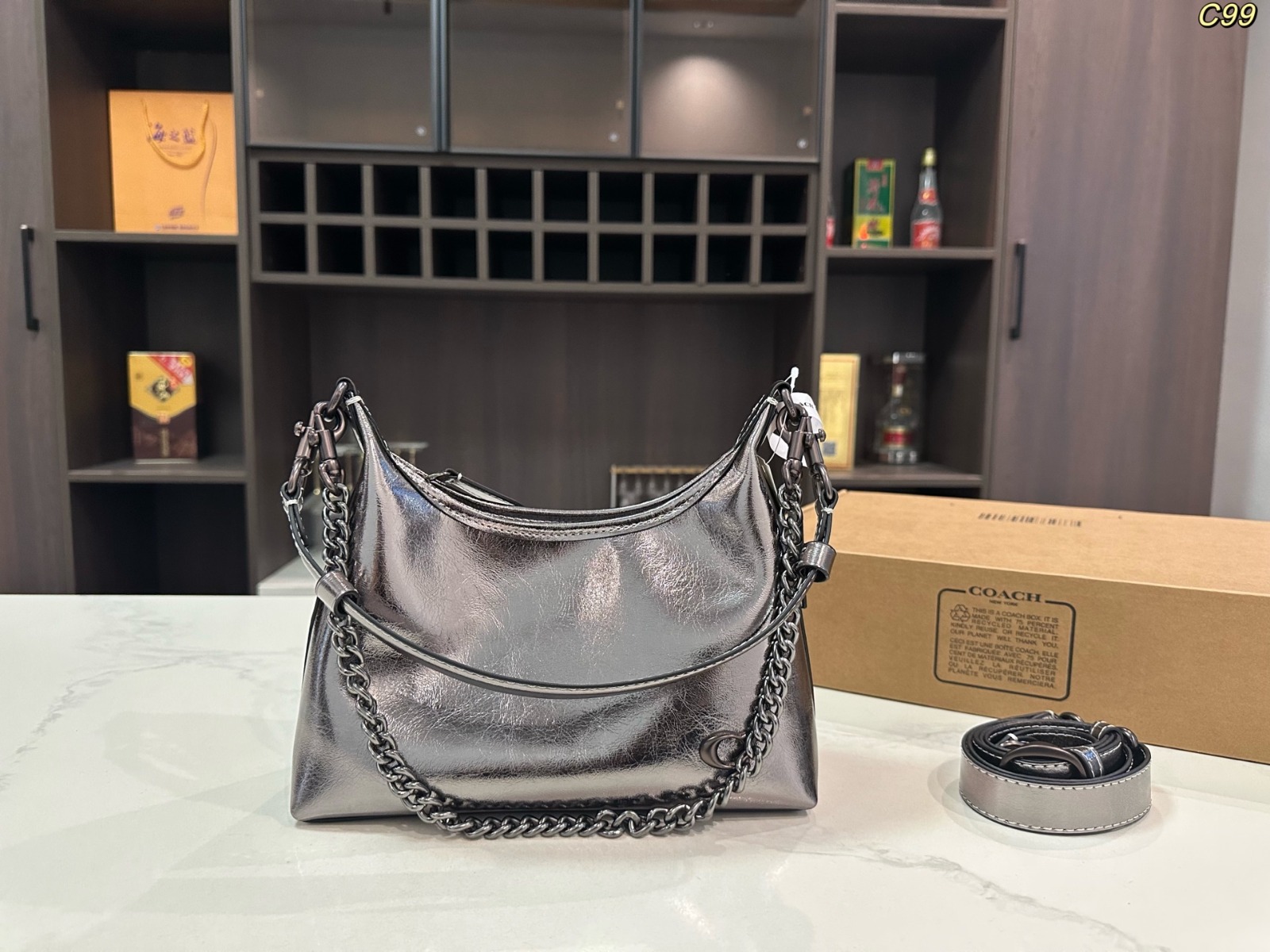 1227 COACH 鏈條皮革腋下包 2月頭 截單日期:12月27日 到貨日期:預計2月頭 💲599 ✨ 金屬質感皮革,增添時尚元素 😊 🔄 可拆取肩帶,支持多種背法 🌟 🔒 拉鍊封口,確保安全性 💖 🗂️ 內置按扣口袋,方便收納日常必需品 👜 📐size (cm) : 26 x 20 x 8.5 聲明: * 貨品為平行進口貨/outlet貨,非專賣店購入,請介意者慎重考慮。 * 人手量度有機會1-3cm左右誤差屬正常 * 顏色可能會因網頁呈現與拍攝關係產生色差,圖片僅供參考,實物為準。